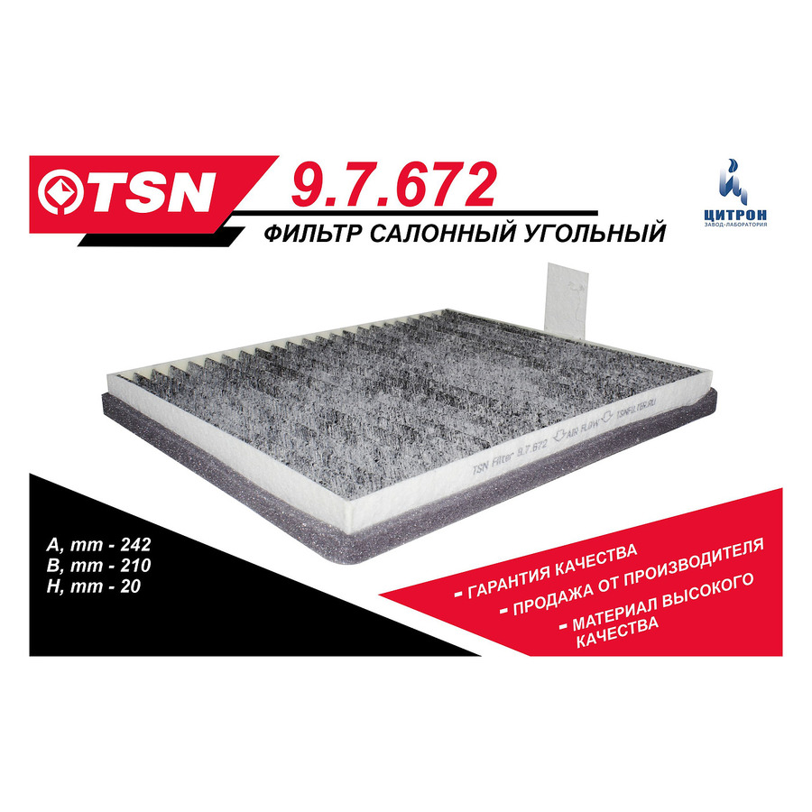 Фильтр очистки салона угольный 2170 с кондиционером HALLA" ЦИТРОН 9.7.672