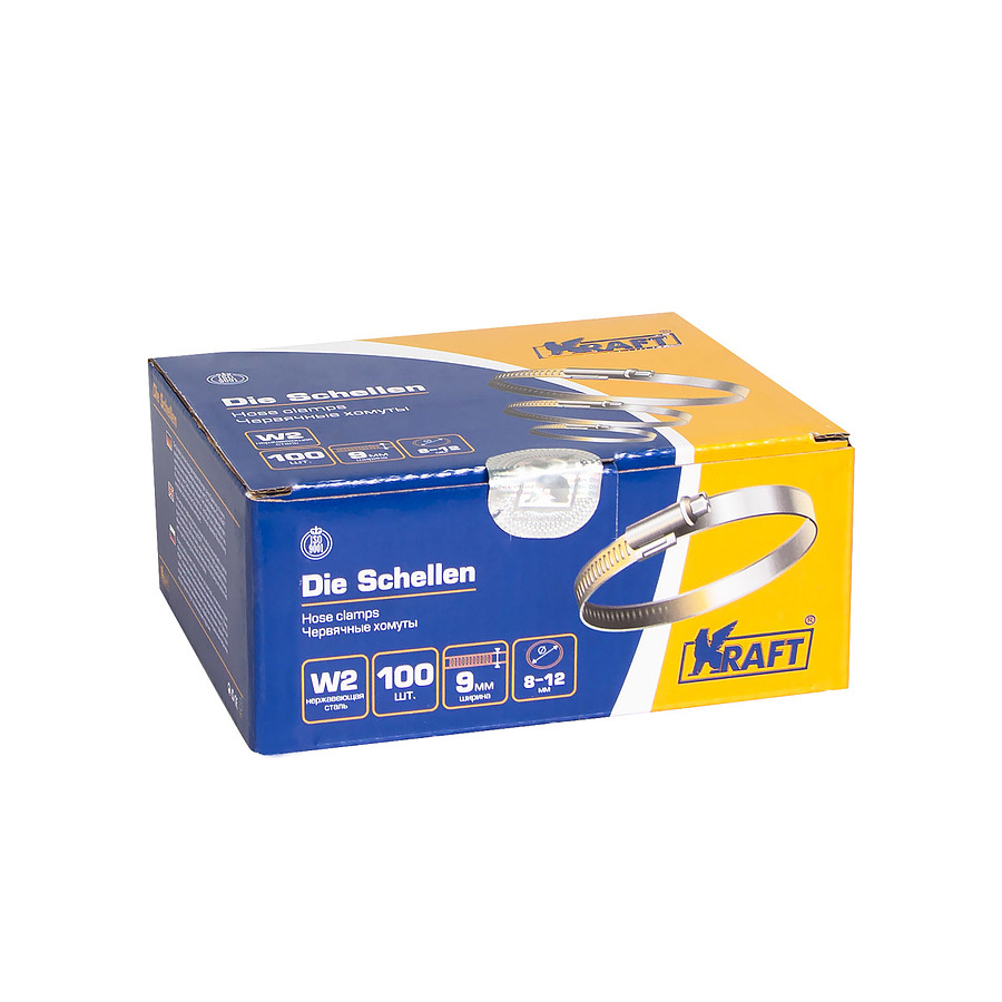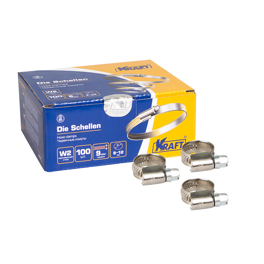 Хомут 8-12 мм (нержавеющая сталь) (уп-100) KRAFT KT 880400