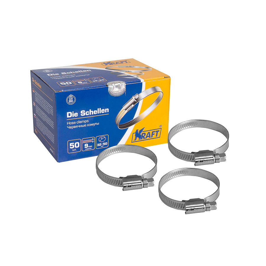 - Хомут 32-50 мм червячный (уп-50) KRAFT KT 880207