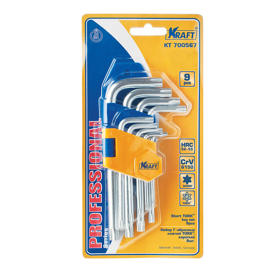 - Набор ключей торцевых Г-образных torx, короткие, 9шт KRAFT KT 700567