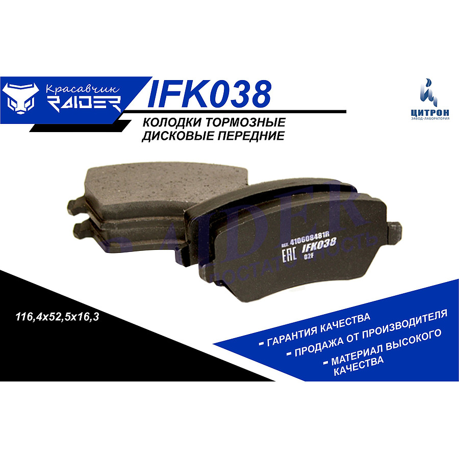 Колодка переднего тормоза ЛАРГУС RENAULT Logan ЦИТРОН RD13046027092