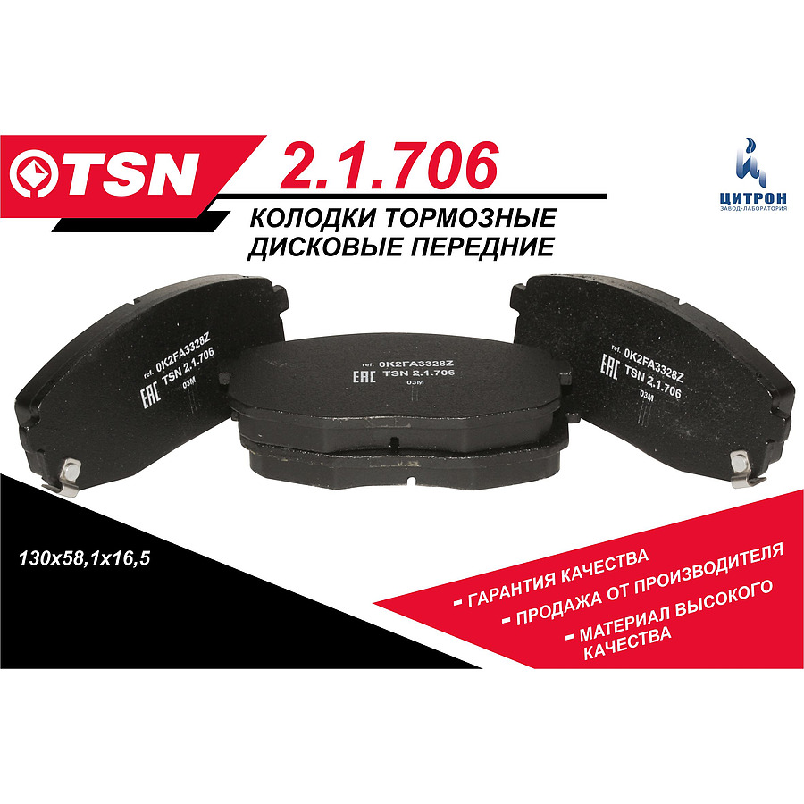 - Колодка переднего тормоза HYUNDAI: Creta I/II, i30 I; KIA: Cerato II, Soul II, Carens I, Ceed I ЦИТРОН 2.1.706