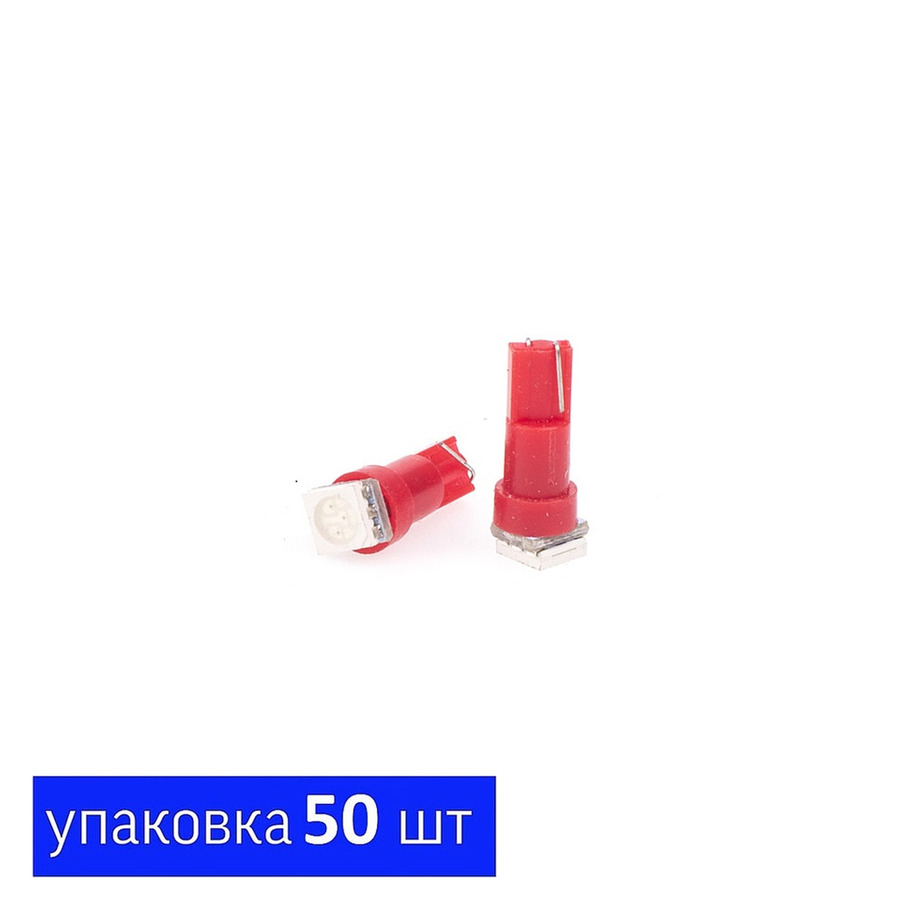 - Лампа диодная T5 12v W1,2W 1SMD5050 диод красный (уп-50)